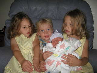 JA brought all of the kids over to visit after church on Sunday.Lydia is not as excited as Kara and Andy are about her new brother.